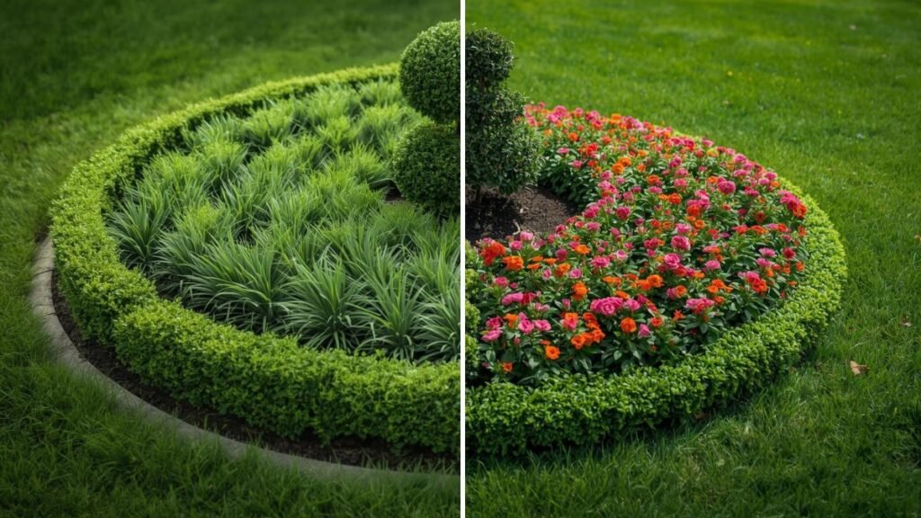 Color burst beds focus on bold hues. Bright flowers create dramatic impact. This style draws attention immediately. Repeating colors creates unity. Seasonal changes refresh the look. Color bursts suit modern gardens. Proper planning avoids clashes. Bold designs energize spaces.